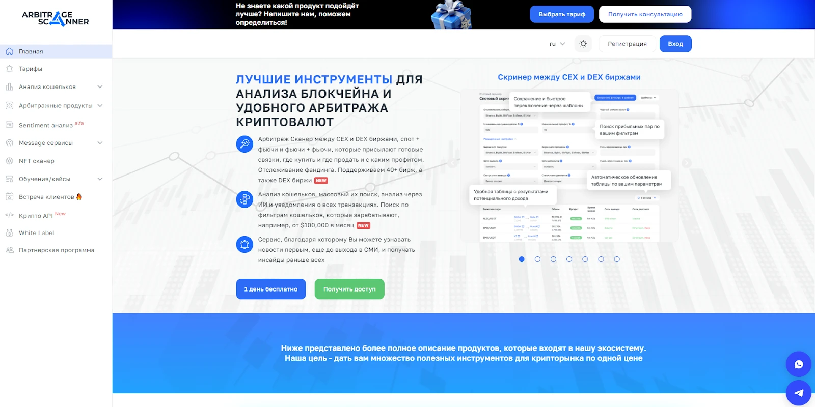 Get a subscription and access the best tool on the market for arbitrage on Spot, Futures, CEX, and DEX exchanges.